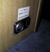 「トイレってどこに?」と思われるでしょうけど、写真の下の方にカバーがかかってるのが見えると思います。これが便座。そう、ドアがないんですドアが。トイレに座ったとすると、目の前に冷蔵庫が来る格好。で、ドアの代わりに両側にカーテンが付いていて、それで仕切ります。(このカーテンはプライベートカーテンと呼ぶそうです)真上には換気扇も付いていますが、でもなあ。